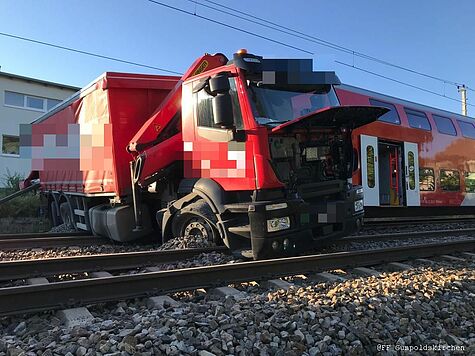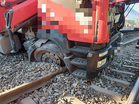 Nachdem der Zug mit eigener Kraft wegfahren konnte, wurde mit der aufwendigen Bergung begonnen. Da sich der schwer beschädigte LKW im Gleisbett mit den Schienen verkeilt hatte, gestaltete sich die Bergung mehr als schwierig. Ein Aufstellen des Krans war aufgrund der Oberleitung und der örtlichen Gegebenheiten nicht möglich. Mit der 20 Tonnen Seilwinde des Kranfahrzeuges konnte der LKW nach mehreren Versuchen weggezogen werden. Dazu musste das Kranfahrzeug mehrmals umgestellt werden. Unter Zuhilfenahme eines Zweiwegebaggers konnte der LKW anschließend zurück zum Bahnübergang gezogen werden. Eine Fachfirma übernahm den weiteren Abtransport.