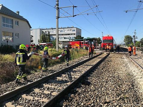 Leider wurden mehrmals die Absperrungen durch die vielen schaulustigen Personen nicht eingehalten und auch bewusst übertreten. Bei Einsätzen im Gleisbereich und vor allem bei Arbeiten mit Seilwinden bei solch großen Lasten sind die Sicherheitsabstände unbedingt einzuhalten!