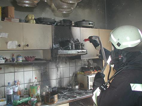 In der Zwischenzeit führte ein weiterer Atemschutztrupp in der betroffenen Küche die Löscharbeiten durch. Bereits nach kurzer Zeit konnte „Brand aus“ gegeben werden. Nach kleineren Nachlöscharbeiten war die Gefahr endgültig gebannt; die Wohnung ist insbesondere durch den Brandrauch vermutlich unbrauchbar geworden.