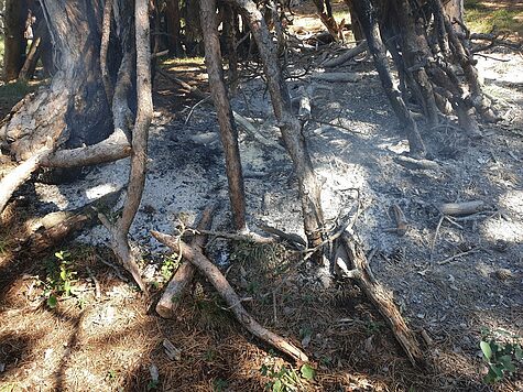 Mit Löschrucksäcken und Schanzwerkzeug konnte umgehend die Brandbekämpfung eingeleitet werden. Einzelne Äste mit erhöhter Temperatur wurden abschließend noch von der Brandstelle zu Tank 4 verbracht, wo sie schlussendlich vollständig abgelöscht werden konnten.