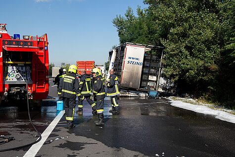 Zuvor bemerkte der slowakische Lkw-Fahrer während der Fahrt, auf der A4 in Richtung Wien bei Kilometer 11, eine Rauchentwicklung an seinem Sattelauflieger. Geistesgegenwärtig steuerte er sein Fahrzeug auf den Pannenstreifen und trennte den Auflieger von der Zugmaschine. Die eingetroffenen Feuerwehren konnten unter der Einsatzleitung der Freiwilligen Feuerwehr Mannswörth den Brand rasch unter Kontrolle bringen.