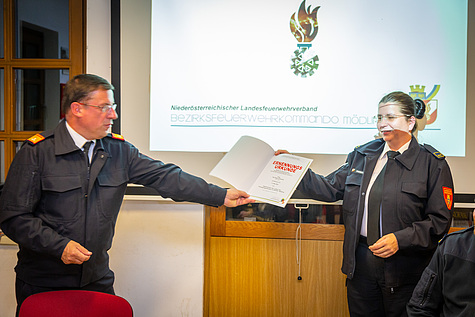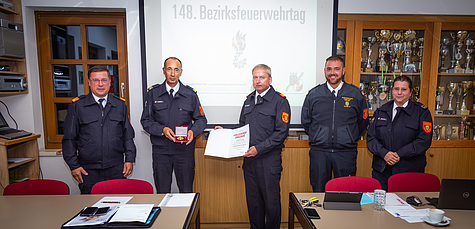 Auf der Tagesordnung stand auch die Ernennung von OV Petra Prissnitz zur Stv. Leiterin des Bezirksverwaltungsdienstes. VR Reinhard Hornig wurde zum Ehrenverwaltungsrat ernannt und erhielt für sein langjährige, verdienstvolle Tätigkeit das Verdienstkreuz des NÖ Landesfeuerwehrverbandes.