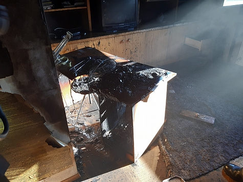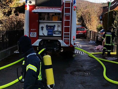 Drei Atemschutzgeräteträger nahmen umgehend die Brandbekämpfung mittels einer Löschleitung im Innenbereich vor. Gleichzeitig wurde von den eintreffenden Nachbarfeuerwehren die Löschwasserversorgung sichergestellt sowie Reserveatemschutztrupps ausgerüstet. Nach wenigen Minuten konnte der Brand, welcher von einem Schreibtisch ausging, abgelöscht werden. Im Anschluss daran wurde das Haus druckbelüftet sowie die betroffenen Bereiche mittels Wärmebildkamera kontrolliert.