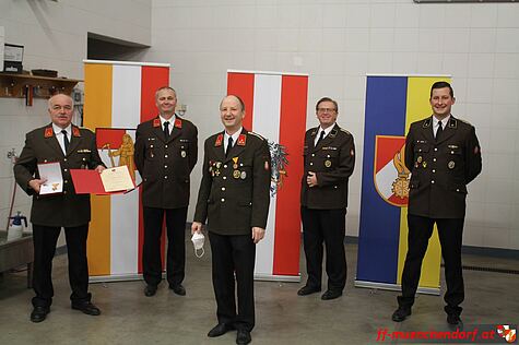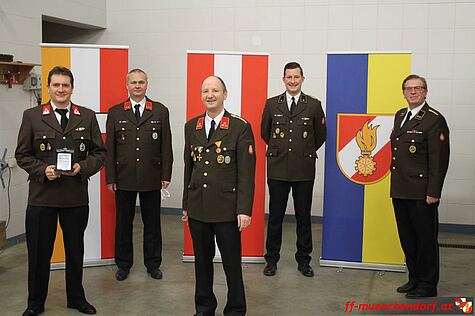 Zum Abschluss der Beförderungen wurde dem ehemaligen Feuerwehrkommandant der Feuerwehr Münchendorf, Hauptbrandinspektor Andreas Polacsek, der Ehrendienstgrad für seine langjährige Tätigkeit im Kommando der Feuerwehr Münchendorf verliehen.