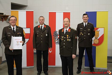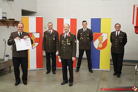 Des weiteren wurde Feuerwehrmann Markus Gager zum Dienstgrad Verwaltungsmeister befördert, da er in Zukunft den Verwaltungsdienst in der Feuerwehr Münchendorf als Gehilfe unterstützen wird.