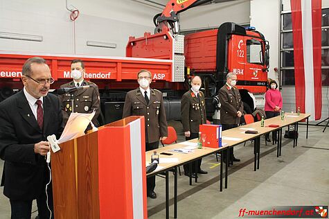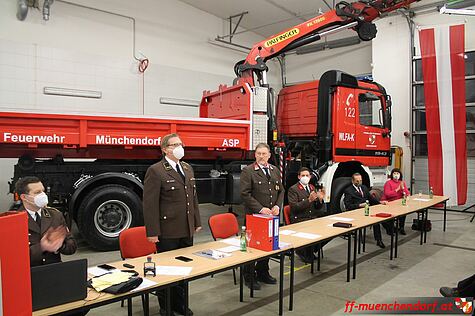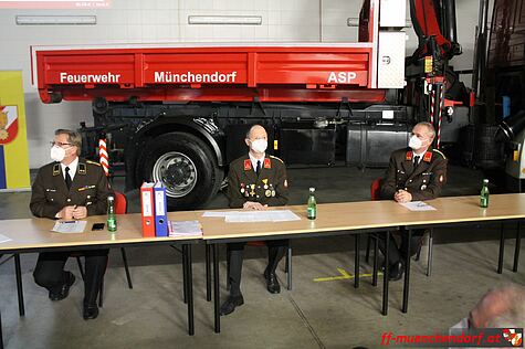 Am Freitag, den 15. Jänner 2021, fand die jährliche Hauptversammlung der Freiwilligen Feuerwehr Münchendorf statt. Auf Grund der Corona-Pandemie wurde diese Versammlung, unter Berücksichtigung besonderer Vorsichtsmaßnahmen, in der Fahrzeughalle des Feuerwehrhauses durchgeführt. Als einer der Tagesordnungspunkte stand die Neuwahl des Feuerwehrkommandanten und des Feuerwehrkommandanten-Stellvertreters auf dem Programm.
