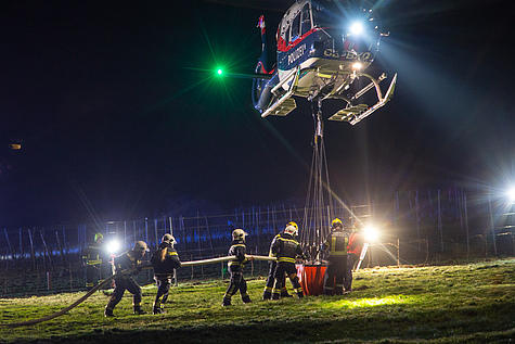 Über Nacht wurde eine Brandwache an der Einsatzstelle belassen, am nächsten Morgen folgten weitere Löschmaßnahmen aus der Luft.