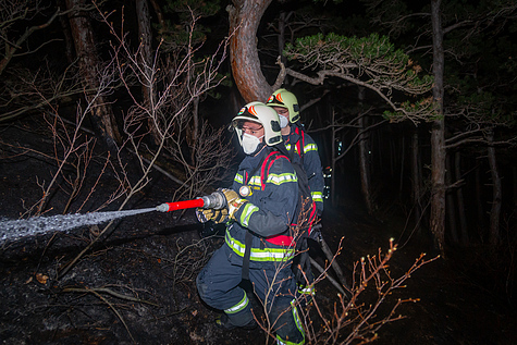 An der Brandstelle arbeiteten rund 30 Feuerwehrmitglieder mit Löschrucksäcken und Schanzwerkzeug, um Flammen und Glutnester zu bekämpfen. In weiterer Folge konnten auch Löschleitungen vorgenommen werden – gemeinsam mit dem Löschwasserabwurf durch den Hubschrauber zeigten diese Maßnahmen gegen 21:00 Uhr Wirkung und der Brand war unter Kontrolle.