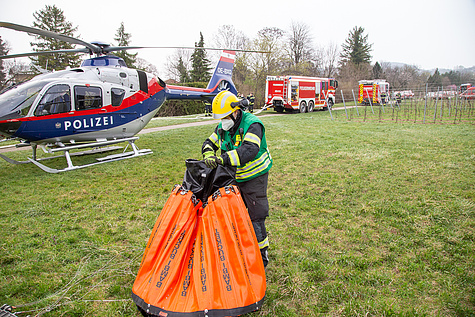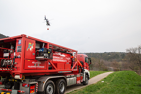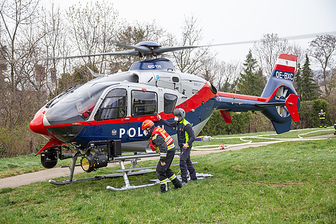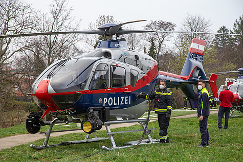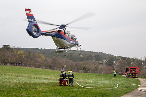 Für die Zusammenarbeit mit den Hubschraubern der Flugpolizei wurde auch die Flugdienstbasisgruppe Süd des NÖ Landesfeuerwehrverbandes aus Wr. Neustadt angefordert – dieser Sonderdienst ist auf die Arbeit mit Luftfahrzeugen spezialisiert. Für die Betankung der Hubschrauber mit Kerosin / Jet-A1-Treibstoff transportierte das Wiener Neudorfer Wechselladerfahrzeug eine in Tulln stationierte mobile Tankstelle nach Mödling.