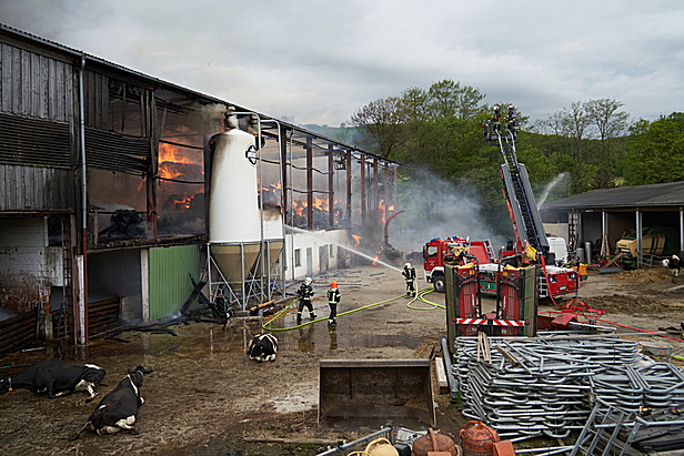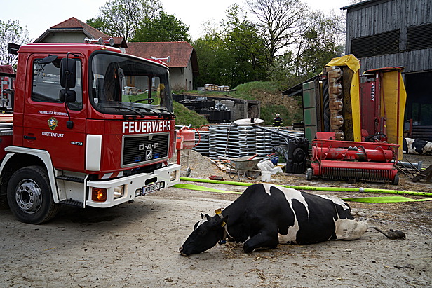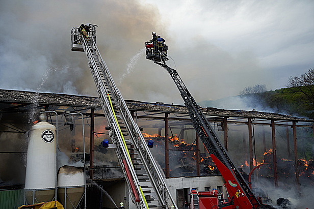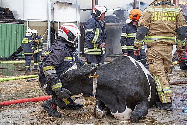 Gegen 08:30 Uhr wurden im Bezirk Mödling zahlreiche Feuerwehren zum Brand eines landwirtschaftlichen Gebäudes in Laab im Walde alarmiert – als die erste Feuerwehr am Einsatzort eintraf, stand ein Rinderstall inklusive Heulager in Vollbrand. Sieben Feuerwehren aus dem Bezirk Mödling sowie drei Feuerwehren aus dem benachbarten Bezirk St. Pölten-Land waren notwendig, um angrenzende Gebäude zu schützen und die Tiere zu retten.