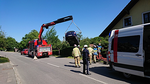 Aus unbekannter Ursache war ein PKW von der Fahrbahn abgekommen und kollidierte mit einem auf einem Grundstück abgestellten Fahrzeug, durchbrach eine Hecke und kam in weiterer Folge in einem Garten und zum Teil in einer dort befindlichen Gartenhütte zum Stillstand. Die Lenkerin konnte sich unter Mithilfe von Passanten aus dem Fahrzeug befreien und wurde zur weiteren Betreuung an den alarmierten Rettungsdienst übergeben.