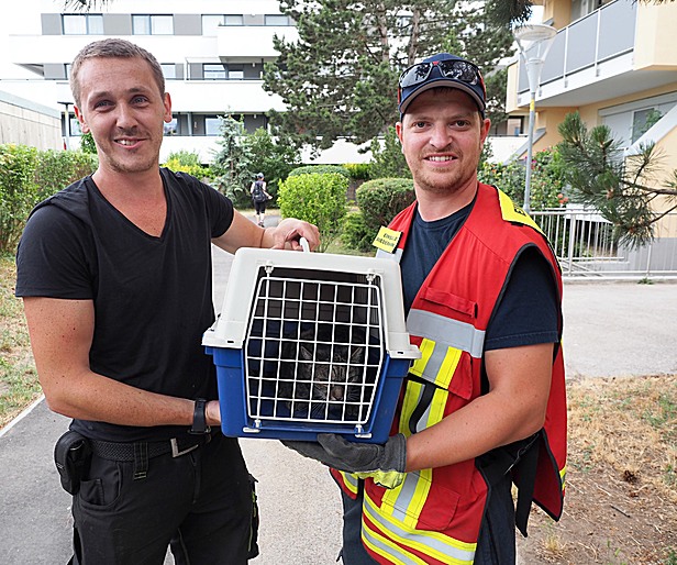 Die Katze Maja stürzte aus einem Fenster im ersten Stock und verkroch sich anschließend in einem Lüftungskanal eines Kellers. Der Katzenbesitzer, selbst Feuerwehrmitglied, versuchte mehrere Stunden vergeblich seine Katze mit Futter und Zurufen herauszulocken. Da sämtliche Bemühungen misslangen, wurde die FF Biedermannsdorf zur Tierrettung alarmiert. Mittels Wärmebildkamera wurde Maja im Schacht lokalisiert. Um den Lüftungskanal nicht zerlegen zu müssen, wurde von einer Seite vorsichtig Druckluft eingeblasen, um so die Katze zum selbstständigen Verlassen zu bewegen. Da dieses Vorgehen erfolgreich war, konnte die leicht verletzte Maja eingefangen und dem Besitzer übergeben werden.