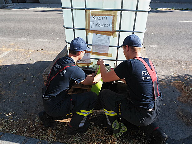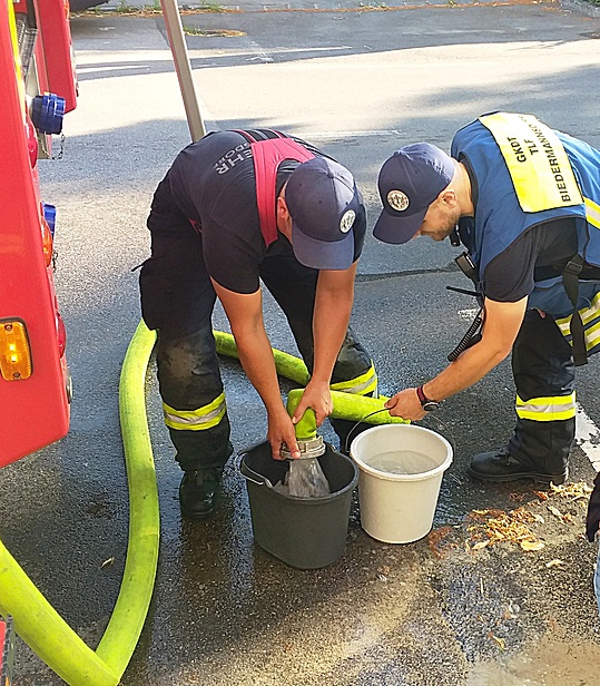 Da die Dauer der Reparaturarbeiten nicht abzusehen war, wurde von der Feuerwehr ein Behälter mit 1.000 Litern Wasser befüllt und der Bevölkerung für die Wasserentnahme zur Verfügung gestellt.