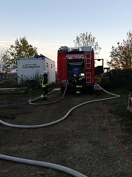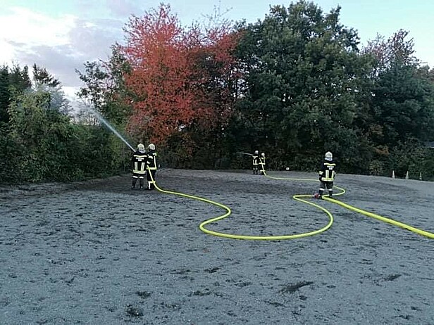 Die Kameraden der FF Dornbach sind um 17:00 Uhr bei der Übungsadresse eigetroffen und begannen mit dem Aufbau einer Löschleitung zum Schützen des Waldes über ihr Hilfeleistungslöschfahrzeug. Nach Eintreffen, stellte die FF Sulz sofort eine Zubringleitung vom Teich des Betriebes zum „Tank Dornbach“ her. Die FF Grub legte eine Löschleitung und begann mit der Brandbekämpfung der Scheune.