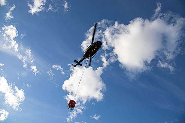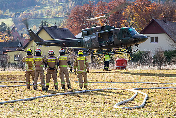Vor Ort wurden nach einer kurzen Lageeinweisung auf Anweisung von erfahrenen Flughelfern die Löschwasserbehälter der Hubschrauber des Österreichischen Bundesheeres befüllt. Dafür musste durch die Feuerwehren Achau und Laab im Walde aus der Schwarza angesaugt werden. Der Inhalt der Löschwasserbehälter wurden durch die Hubschrauber dann gezielt über Glutnestern und kleineren Brandherden abgeworfen. Das Befüllen der Behälter brachte dabei eine erhebliche körperliche Anstrengung der Einsatzkräfte mit sich. Aufgrund des Regens und der guten Vorarbeit der letzten Tage konnte ein erheblicher Einsatzerfolg verbucht werden. Nur mehr einzelne Brandstellen mussten mit Hilfe der Hubschrauber abgelöscht werden. Am Nachmittag untersützen die Kräfte des KHD-Zuges einzelne Rückbaumaßnahmen von Einsatzgeräten der Bereichseinsatzleitung OST.