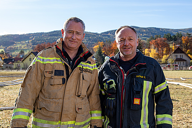 Auch Bezirksfeuerwehrkommandant OBR Ing. Michael Bruckmüller und KHD-Bereitschaftskommandant BR Kurt Raitmar verschafften sich am 03.11. einen Überblick über die Lage vor Ort und dankten den Einsatzkräften persönlich für Ihren Einsatz.