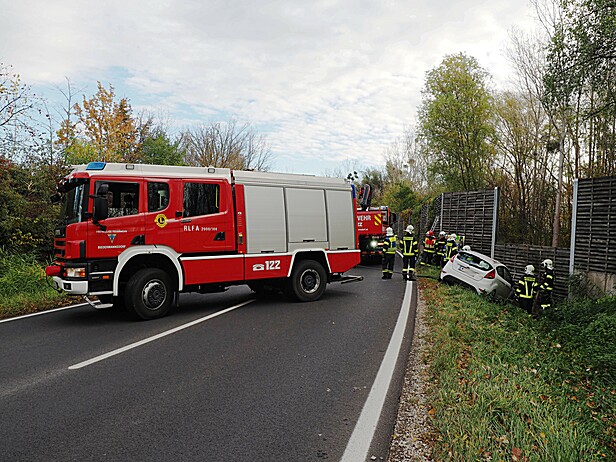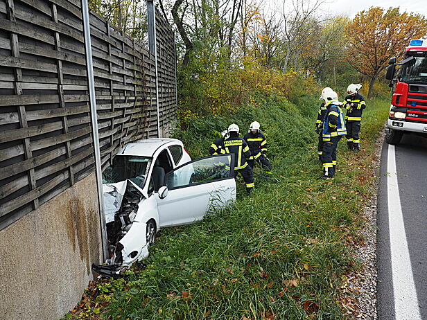 Aus unbekannter Ursache verlor am 05.11.2021 eine PKW Lenkerin mit ihrem Fahrzeug in einer langgezogenen Linkskurve auf der B11 die Kontrolle über ihr Fahrzeug. Das Fahrzeug stürzte über die Böschung und kollidierte mit der dort befindlichen Lärmschutzwand.
