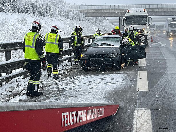 Kurz nach 8:00 Uhr wurde die Feuerwehr Wiener Neudorf ebenfalls auf die Autobahn A2 alarmiert: Ein Pkw-Lenker hatte auf der Fahrbahn Richtung Graz die Kontrolle über sein Fahrzeug verloren – danach wurde das Auto von einem Lkw touchiert. Die Feuerwehr barg den Pkw mit dem Abschleppfahrzeug, der Lkw konnte seine Fahrt selbstständig fortsetzen.