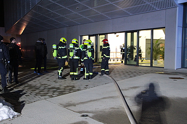 Zwischenzeitlich konnte durch den eingesetzten Atemschutztrupp ein Schmorbrand im Bereich einer Kabeltasse im ersten Obergeschoss festgestellt werden. Dieser war bereits von selbst erloschen, wodurch keine weiteren Löschmaßnahmen erforderlich waren. Ein weiterer Atemschutztrupp führte umfassende Kontrollen in den angrenzenden Geschoßen durch, glücklicherweise konnte keine weitere Gefährdung festgestellt werden.