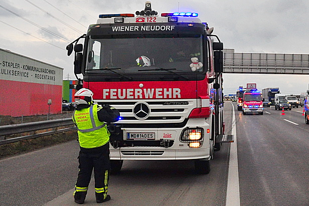 Die FF Wiener Neudorf stand mit vier ausgerückten Fahrzeugen und 17 Mann rund eine Stunde lang gemeinsam mit der Autobahnpolizei und der Asfinag im Einsatz.