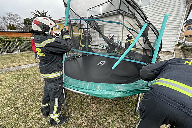 Die Bewohner eines Einfamilienhauses in der Merz Gasse stellten fest, dass plötzlich ein Trampolin in ihrem Garten lag. Schnell konnte festgestellt werden, dass das Trampolin aus dem Nachbarsgarten über den Gartenzaun geweht wurde. Kurzerhand wurde das stark verbogene Trampolin in kleinere Teile zerlegt und in den Garten des Besitzers gehoben. Durch Steinfliesen wurde das Trampolin beschwert und gegen Abheben gesichert.
