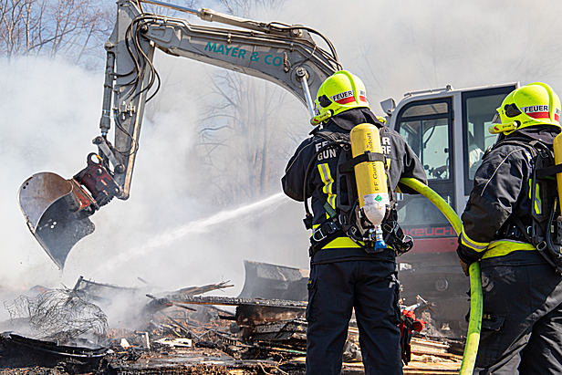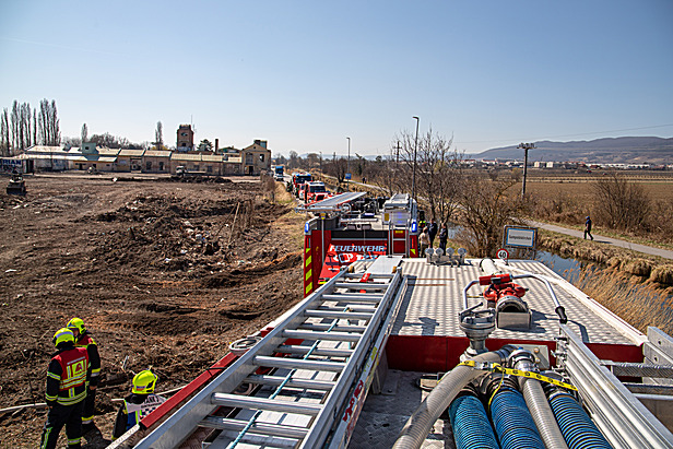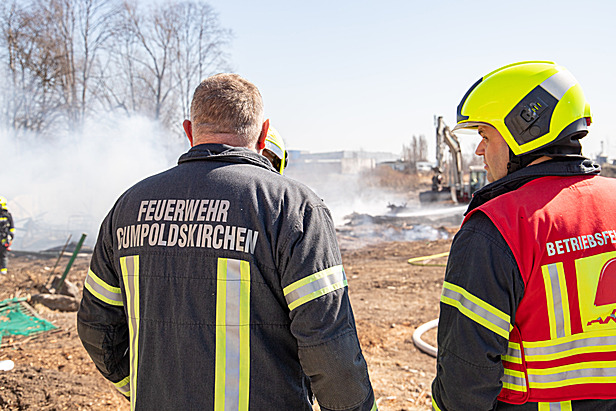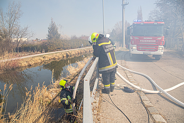Die Wasserversorgung wurde aus dem nahe gelegenen Wiener Neustädter Kanal sichergestellt. Um den Brand restlos ablöschen zu können wurden die Holzteile mit Hilfe eines Baggers auseinander gezogen. Die örtlich zuständige Feuerwehr Gumpoldskirchen übernahm in weiterer Folge die Nachlöscharbeiten am Einsatzort.