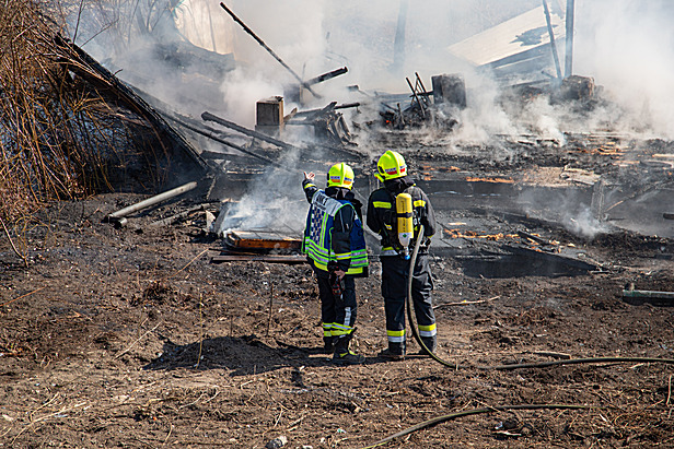 Während anfangs von einem Brand in der Münchendorferstraße ausgegangen wurde, konnte der tatsächliche Einsatzort durch weitere Notrufe rasch "Am Kanal" an der Gemeindegrezen zwischen Gumpoldskirchen un Guntramsdorf ausgemacht werden. Aus unbekannter Ursache hatte dort eine ca. 80 Quadratmeter große Holzhütte auf einem Abrissgrundstück zu brennen begonnen. Beim Eintreffen der Einsatzkräfte stand die teils eingestürzte Holzhütte bereits in Vollbrand.