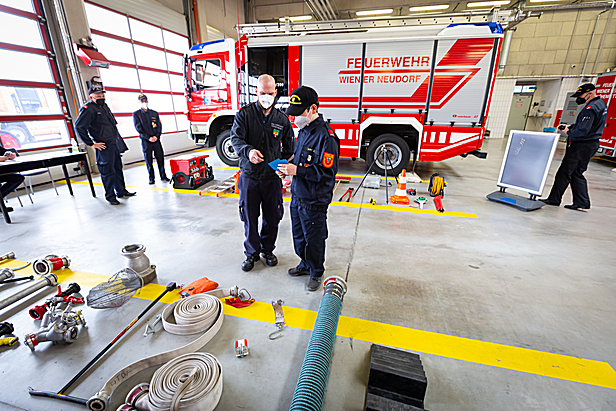 Normalerweise findet die Veranstaltung als gemeinsames Erlebnis statt, diesmal mussten die Jugendgruppen von 15 Feuerwehren gestaffelt antreten – so sah es das Corona-Schutzkonzept vor. Nacheinander trafen die Gruppen beim Wiener Neudorfer Feuerwehrhaus ein und absolvierten die verschiedenen Stationen, bevor die Abzeichen von den Abschnittsfeuerwehrkommandanten Kurt Raitmar und Christian Fröhlich sowie von Bezirksfeuerwehrkommandant-Stellvertreter Christian Giwiser überreicht wurden.