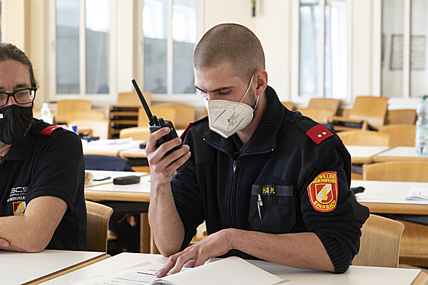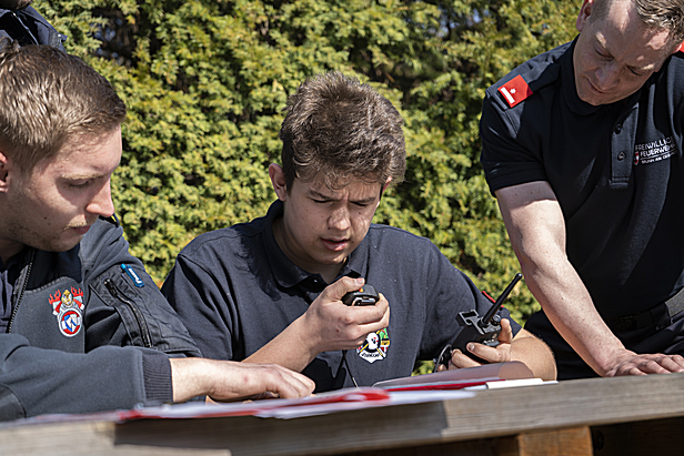 Nach der Theorie wurde zu den praktischen Sprechübungen übergegangen. Beim ersten Durchgang wurde ein Funkgespräch nach Rollenbuch von den Teilnehmerinnen und Teilnehmern vorgelesen, um den Ablauf eines Funkgesprächs zu üben. Im zweiten Durchgang musste das Funkgespräch selbstständig formuliert werden.