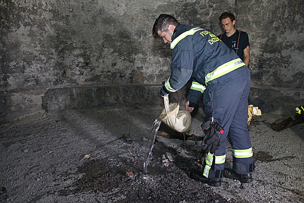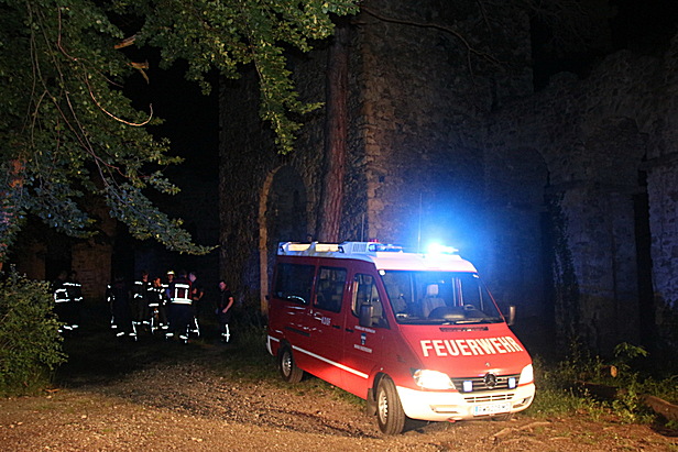 Da aus den Fahrzeugen auf den ersten Blick kein Brand feststellbar war, wurde ein Teil des Waldgebiets zu Fuß abgesucht. Bald darauf entdeckte die Mannschaft des Kommandofahrzeuges im Bereich des Amphitheaters die noch glühenden Überreste eines illegalen Lagerfeuers.