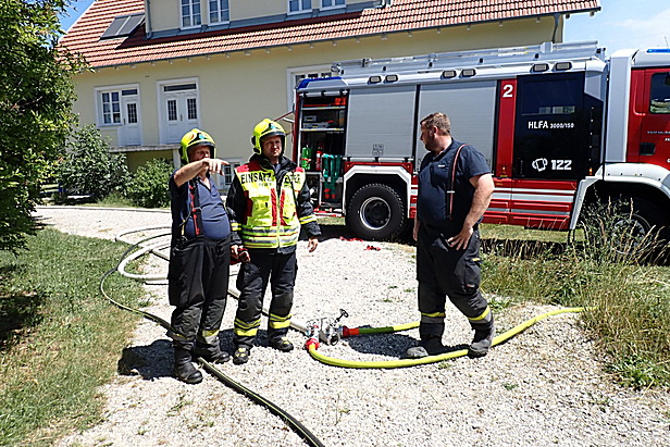 Aufgrund des umfangreichen Einsatzes und der durch die Hitze überaus anstrengenden Arbeit wurde die Freiwillige Feuerwehr Gumpoldskirchen zur Unterstützung nachalarmiert.