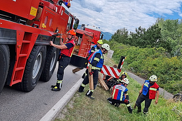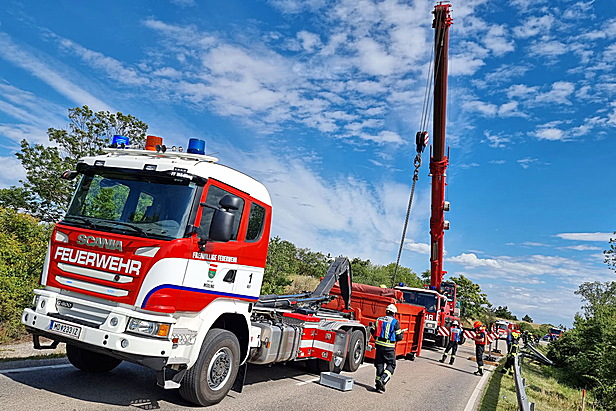 Zur Bergung des Schwerfahrzeuges wurde das Kranfahrzeug des Niederösterreichischen Landesfeuerwehrverbandes, stationiert bei der Feuerwehr Mödling, alarmiert.