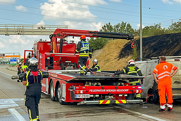 Parallel dazu wurde auch der Brand auf der Böschung von zwei Seiten aus erfolgreich bekämpft. Nach der Kontrolle mittels Wärmebildkamera und den Nachlöscharbeiten wurde das ausgebrannte Wrack mittels des Abschleppfahrzeugs der Freiwilligen Feuerwehr Wiener Neudorf von der Einsatzstelle verbracht.