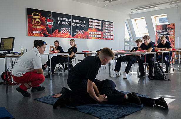 Im Zuge der mehrstündigen Ausbildung wurden die wichtigsten Handgriffe und Vorgehensweisen aus den üblichen Erste-Hilfe-Kursen wiederholt und anschließend praktisch trainiert.
