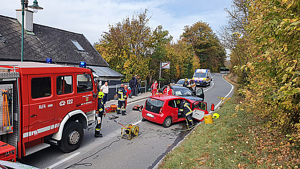 Die Lenkerin des zweiten Unfallfahrzeugs wurde von dem Armaturenbrett so weit eingeklemmt, sodass sie das Fahrzeug nicht verlassen konnte.