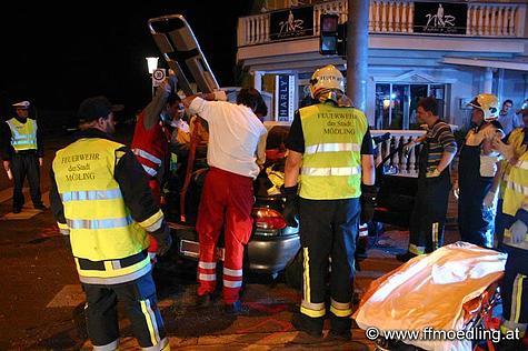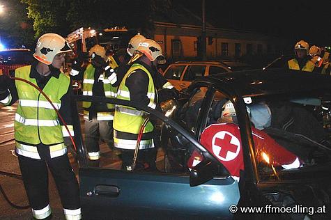 In der Nacht des 19. Mai 2007 wurde die Feuerwehr Mödling zu einem Verkehrsunfall mit Menschenrettung alarmiert. Einer der beteiligten Unfalllenker war in seinem Fahrzeug eingeklemmt. Binnen weniger Minuten rückte die Freiwillige Feuerwehr Mödling mit Tank 3, Tank 5 und Rüst 1 zur Unfallstelle aus. In Zusammenarbeit mit dem Notarzt und dem Roten Kreuz wurden sofort die Maßnahmen zur Rettung der eingeklemmten Person gesetzt.