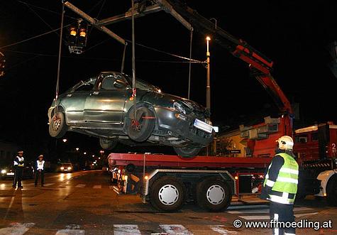 Nachdem der Fahrer medizinisch stabilisiert, das Fahrzeug gegen Erschütterungen abgesichert und der nötige Brandschutz aufgebaut worden war, konnte mit dem Entfernen des Daches begonnen werden. Mittels Hydraulischem Rettungsgerät aus Tank 3 wurde zuerst die C- und dann die B- Säule des Fahrzeuges durchtrennt, um danach die A- Säule so einzudrücken, dass das gesamte Dach auf die Motorhaube vorgeklappt werden konnte. Ohne weitere Behinderung konnte nun die Person vorsichtig aus dem Wrack gerettet werden. Nachdem der Notarzt und das Rote Kreuz die Unfallstelle mit dem Verletzten verlassen hatten, beseitige die FF Mödling noch die Wracks, reinigte die Fahrbahn und konnte nach eineinhalb Stunden wieder ins Feuerwehrhaus einrücken. Die für den Einsatzerfolg so wichtige, gute und vor allem reibungslose Zusammenarbeit zwischen den Blaulichtorganisationen, wurde bei dieser Menschenrettung wieder unter Beweis gestellt.Bildautor: Freiwillige Feuerwehr Mödling