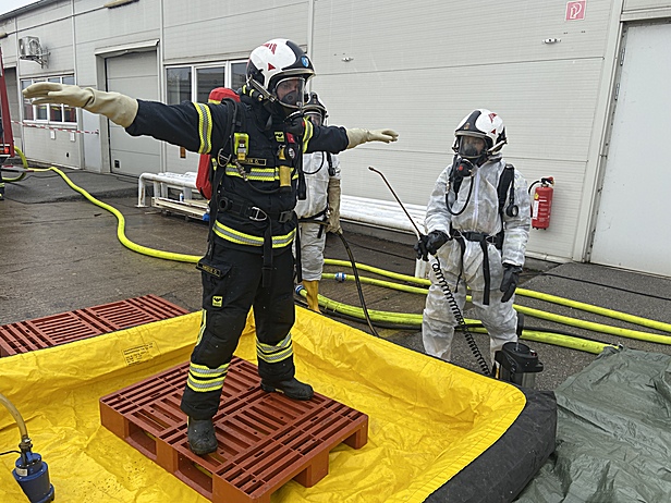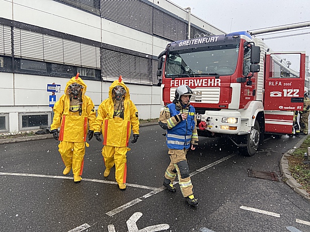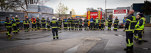 In einem Wiener Neudorfer Industriebetrieb übten heute mehrere Feuerwehren mit rund 50 Mitgliedern den Einsatz bei einem Schadstoffunfall. Beim Umfüllen einer Chemikalie war ein Arbeiter durch den giftigen Stoff verletzt worden und kleine Mengen der Flüssigkeit traten aus, so das Übungsszenario.