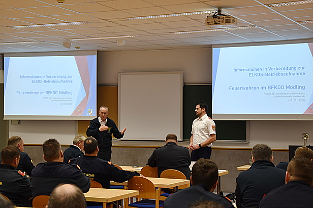 Im Anschluss fand die Kommandantendienstbesprechung im Lehrsaal des Feuerwehrhauses satt. Neben Informationen zu aktuellen Themen des Bezirksfeuerwehrkommandos und des Landesfeuerwehrverbandes, beschäftigte man sich intensiv mit dem neuen Einsatzleit- und Kommunikationssystem (ELKOS). Als Vortragender konnte Stefan Vietze (Mitarbeiter in der ELKOS-Projektgruppe des Landesfeuerwehrkommandos) gewonnen werden.