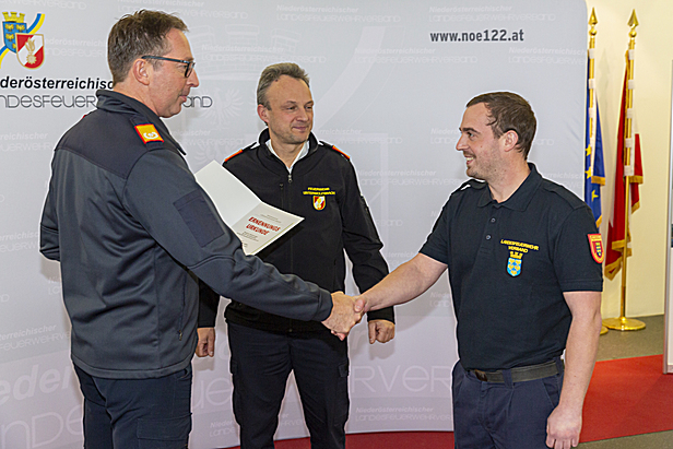 LBDSTV Martin Boyer: „Die Übernahme von Verantwortung ist in der heutigen Zeit besonders hervorzuheben. Ich habe mit im Zuge des Ausbildungsmoduls Taucher Basis selbst ein Bild von der Professionalität dieses Sonderdienstes machen können und bin dankbar, dass zwei so kompetente Mitglieder der Feuerwehrtaucher diese verantwortungsvollen Aufgaben übernehmen.“