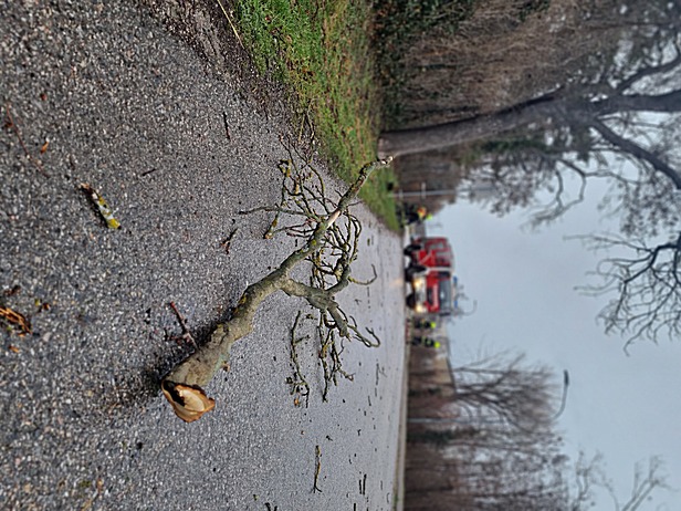 Am Morgen des 4. Februar mussten drei umgestürzte Bäume zum Teil von Straßen entfernt und ein umherfliegendes Trampolin gesichert werden.