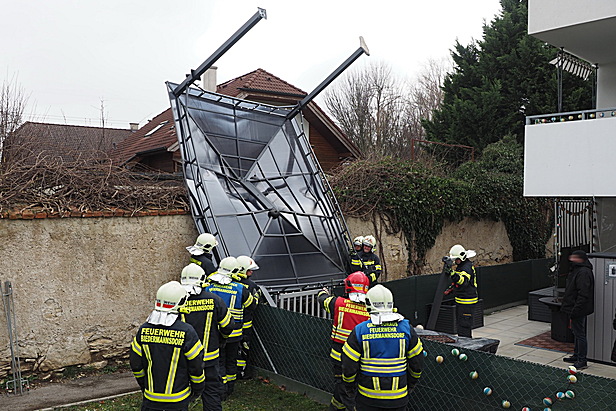 Am Nachmittag rückte die Feuerwehr Mödling unter anderem aus um ein loses Blechteil an einem Gebäude zu demontieren. Außerdem wurden im Zuge weiterer Einsätze umherfliegende Gegenstände und ein umgestürztes Moped gesichert.
