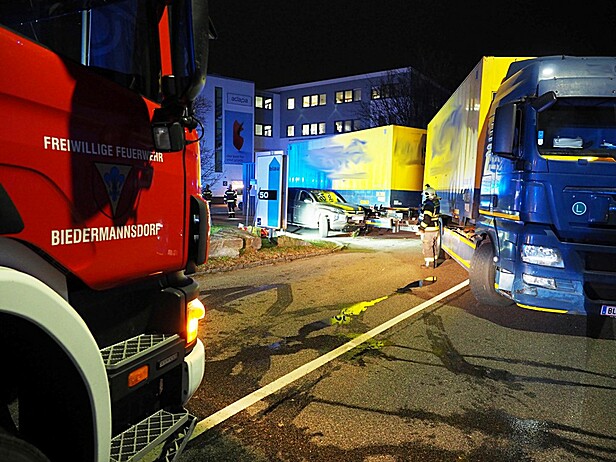 Am späten Nachmittag des 13. Februar 2023 wurden die Feuerwehren Biedermannsdorf und Laxenburg zu einem Verkehrsunfall mit einer eingeklemmten Person in das Industriezentrum Niederösterreich Süd alarmiert. Ein Pkw war aus unbekannter Ursache mit einem LKW-Anhänger zusammengestoßen und hatte sich mit diesem verkeilt.