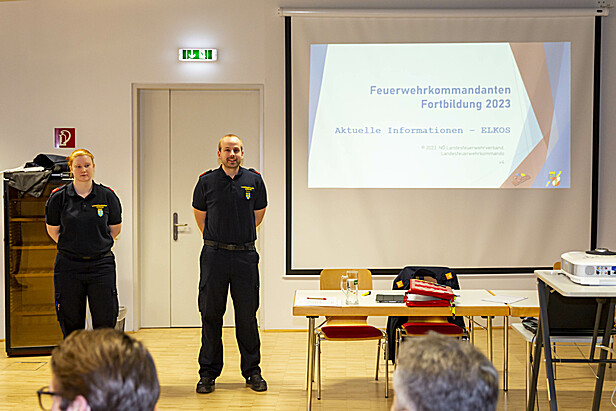 Danach präsentierten Verena Dvorak und Stefan Breineder vom ELKOS-Trainer-Team den aktuellen Stand des ELKOS-Rollouts (Einsatz-Leit- und Kommunikations-System). In ihrem Vortrag gingen sie auf das Konzept des neuen Einsatzleitsystems und auf die Änderungen, die es im Vergleich zum momentanen System mit sich bringt, ein.