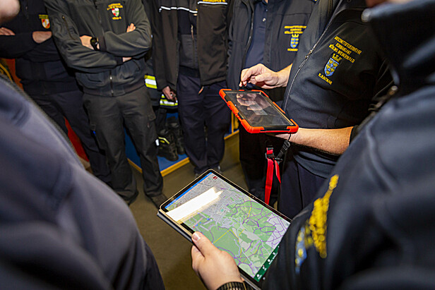 Abschließend fand noch eine kurze Erklärung des Software-Tools für die Eintragung von Waldwegen in den „Waldfachplan“ sowie eine Besichtigung der neuen Waldbrand-Rollcontainer statt. Der „Waldfachplan“ ist ein Projekt, bei dem einsatzrelevante Informationen von Waldgebieten digital erfasst werden.