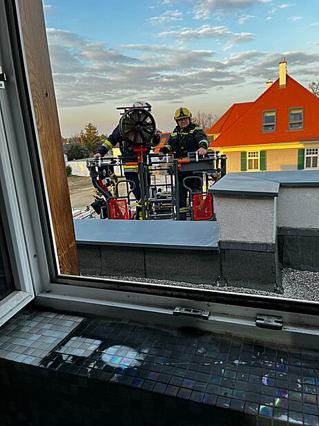 Der erste Atemschutztrupp verschaffte sich über die Dachterrasse Zugang in die Brandwohnung. Die starke Verrauchung in der Wohnung stellte eine enorme Sichtbehinderung dar. Die Wohnung wurde nach Personen durchsucht, war jedoch leer. Der Brandherd konnte in einem Badezimmer lokalisiert und rasch abgelöscht werden; eine Evakuierung der weiteren Wohneinheiten war nicht notwendig.