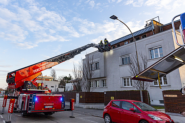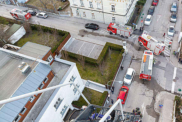 Am späten Nachmittag des 2. März 2023 drang dichter, schwarzer Rauch aus einer Dachgeschosswohnung nahe des Perchtoldsdorfer Marktplatzes. Kurz darauf rückten insgesamt sieben Fahrzeuge der Freiwilligen Feuerwehr Perchtoldsdorf zum Zimmerbrand aus.