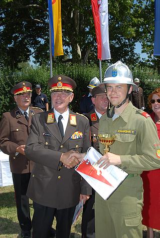 Um 14 Uhr fand bei strahlendem Sonnenschein die Siegerehrungen für Feuerwehrjugend und Aktive statt.