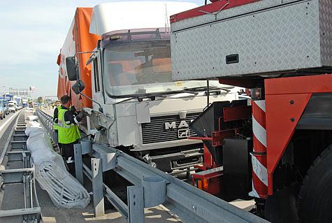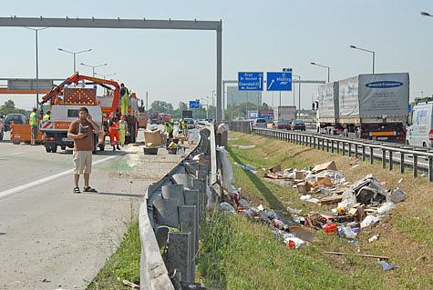 Auf der Südautobahn, Fahrtrichtung Graz Höhe SCS, ereignete sich in den Morgenstunden des 20. Juni 2007 ein schwerer LKW-Unfall. Der Fahrer eines Klein-LKW's verlor aus noch ungeklärter Ursache die Kontrolle über sein Fahrzeug und touchierte einen PKW welcher auf dem Pannenstreifen mit einem Reifenschaden stand. In weiterer Folge prallte er noch mehrmals in die Leitplanke wobei die Ladefläche des LKW's aufgerissen wurde. Erst nach mehreren hundert Metern kam der Transporter an der Leitschiene zu stehen.