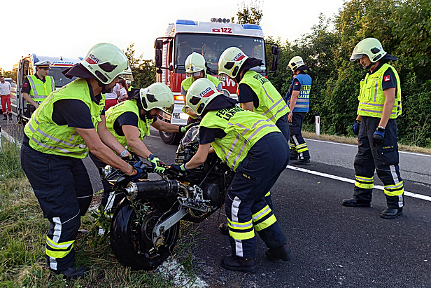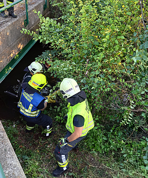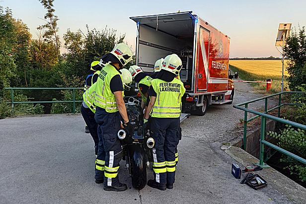 Mit der Seilwinde des Tanklöschfahrzeuges wurde das beschädigte Motorrad aus dem Bach gezogen, auf das Lastfahrzeug verladen, von der Einsatzstelle abtransportiert und bei der Polizeiinspektion Laxenburg gesichert abgestellt. Die Freiwillige Feuerwehr Laxenburg stand mit drei Fahrzeugen und 25 Mitgliedern 80 Minuten im Einsatz.